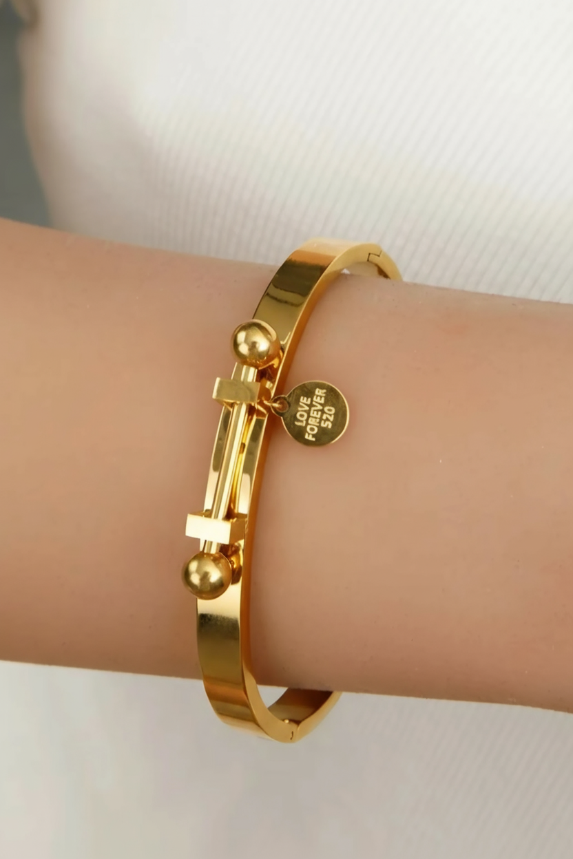 Regular price $98.00The Eternal Yoke – Love Forever Bangle is a sacred reminder of walking in step with God, of being joined to His will, guided by His truth, and strengthened by His Spirit. Engraved with the words “Love Forever” this bangle carries the promise of His enduring love, a love that leads, sustains, and never lets go.