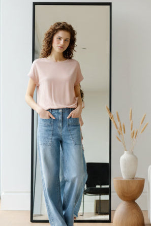 Elevate your basics collection with our fitted long sleeve tee, expertly crafted in our ultra-soft gauzy whisper fabrication. With its universally flattering cut and classic crew neckline, this tee seamlessly blends into your everyday wardrobe. Prepare to wear it on repeat.